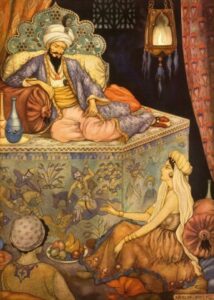 In 1937 maakt Anton Pieck een zesweekse reis naar Marokko, waar hij veel tekeningen maakte van de situaties die hij tegenkwam, zo’n vijfenzeventig stuks in totaal, van het alledaagse leven, de mensen op straat en de vaak al in zeer ‘Pieckse’ toestand verkerende gebouwen. De reis maakt veel indruk op hem. In 1943 wordt Pieck gevraagd om de fikse bundel van de Sprookjes van 1001 Nacht van uitgeverij Parnassus te illustreren. Hierbij kan hij veel steunen op zijn reistekeningen als basis, waar hij de magische en fantastische elementen uit de sprookjes een plaats in geeft.